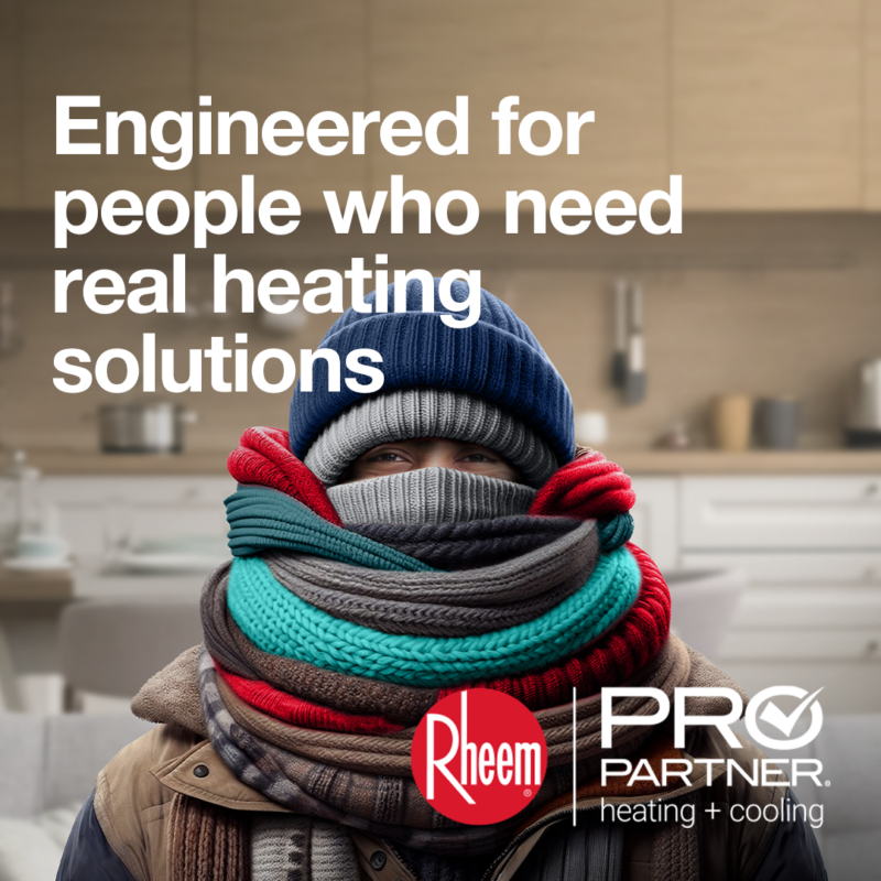 POST COPY: Let’s keep you toasty all winter long. We offer a full line of efficient Rheem heating systems for any home and budget.